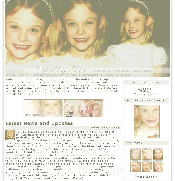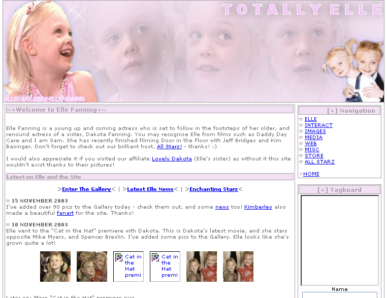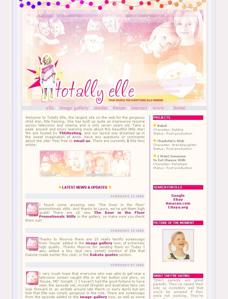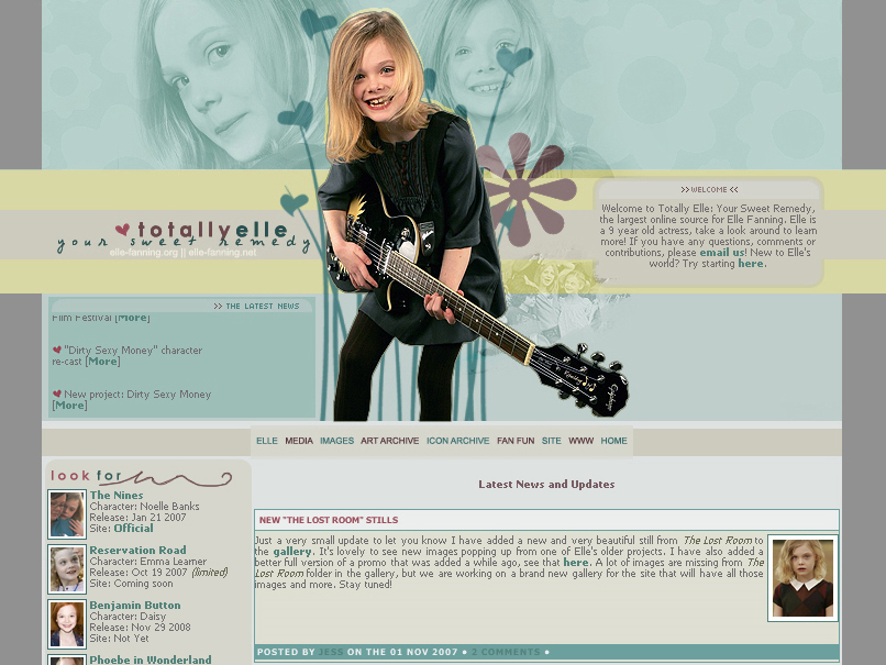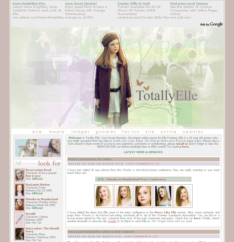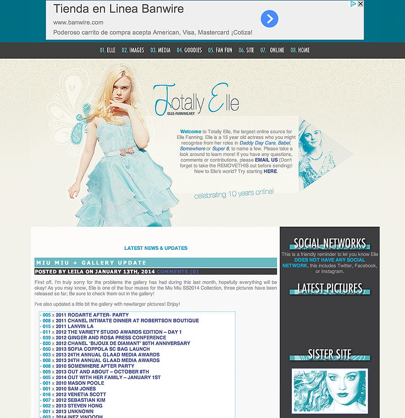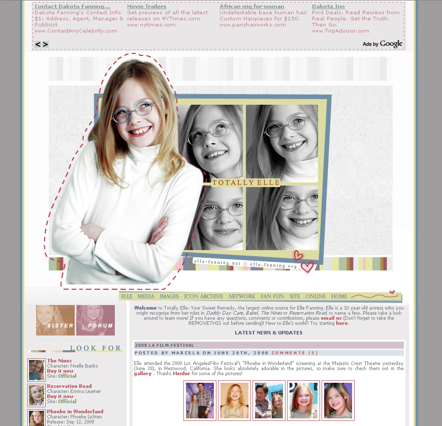 TOTALLY ELLE (www.totally-elle.com) is the original fansite for actress Elle Fanning, founded in 2003. Elle has been active in the entertainment industry since her debut as a voice actor in My Neighbor Totoro, in which she worked with her sister, Dakota Fanning. She has since starred in many projects, such as Maleficent, The Great and A Complete Unknown. We're not affiliated with Elle or her team, we just enjoy keeping up with her work. Thanks for visiting!